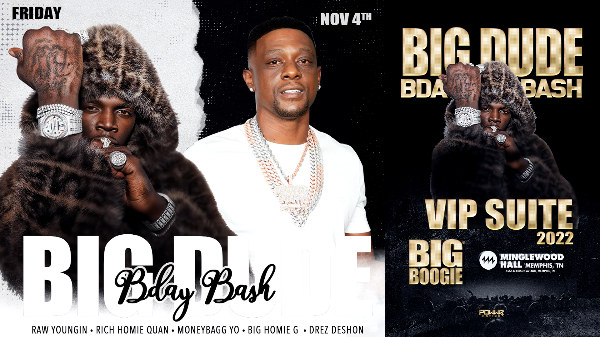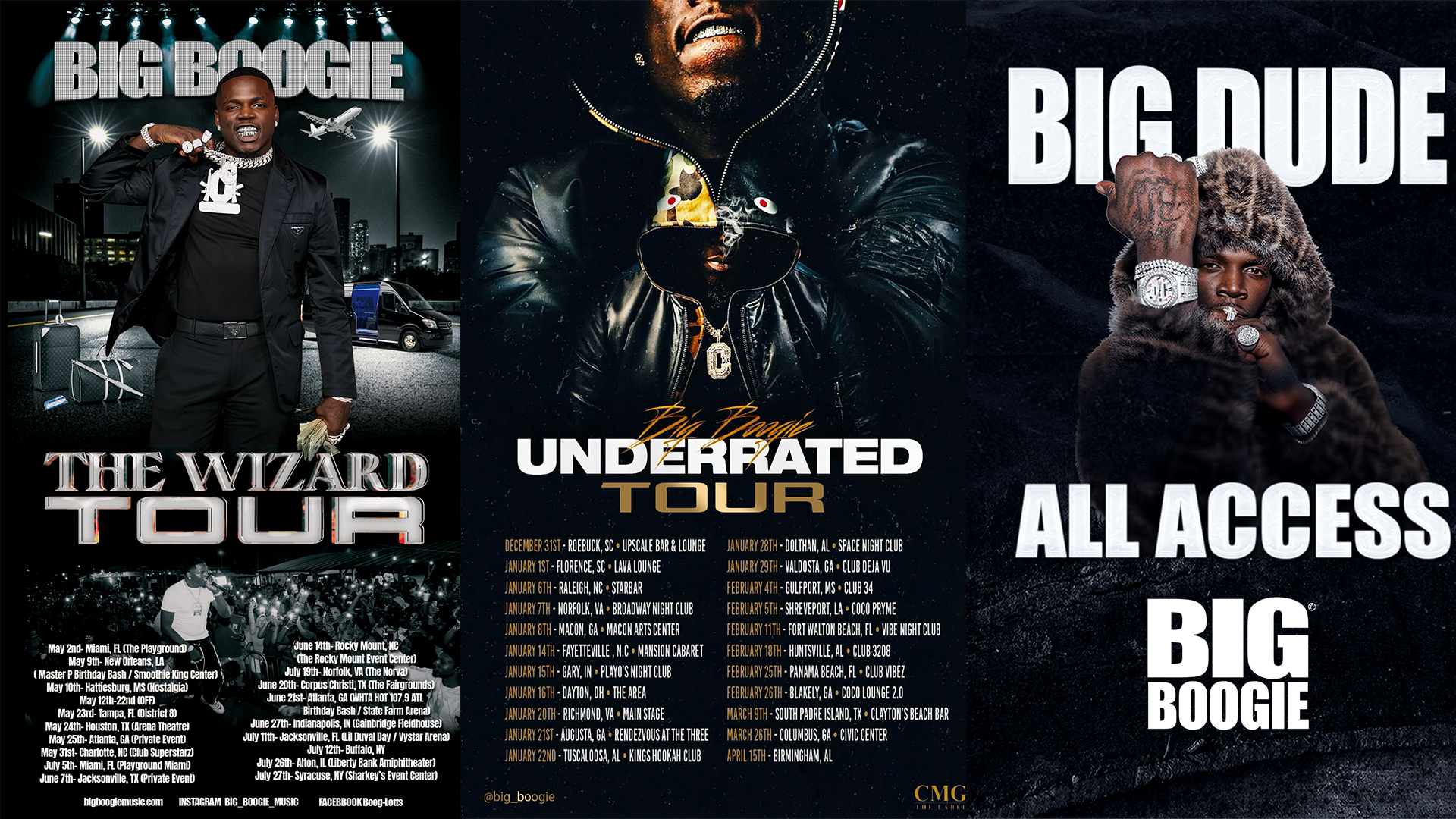 Big & Boogie is a Memphis-based rapper known for his raw energy, honest Southern rap, and ability to blend traditional and contemporary hip hop. Born in Louisiana, Boogie turned to music as a child to escape poverty. After his father's death, he traded his drumsticks for a microphone and released his debut project, Definition of Pain, in 2017.